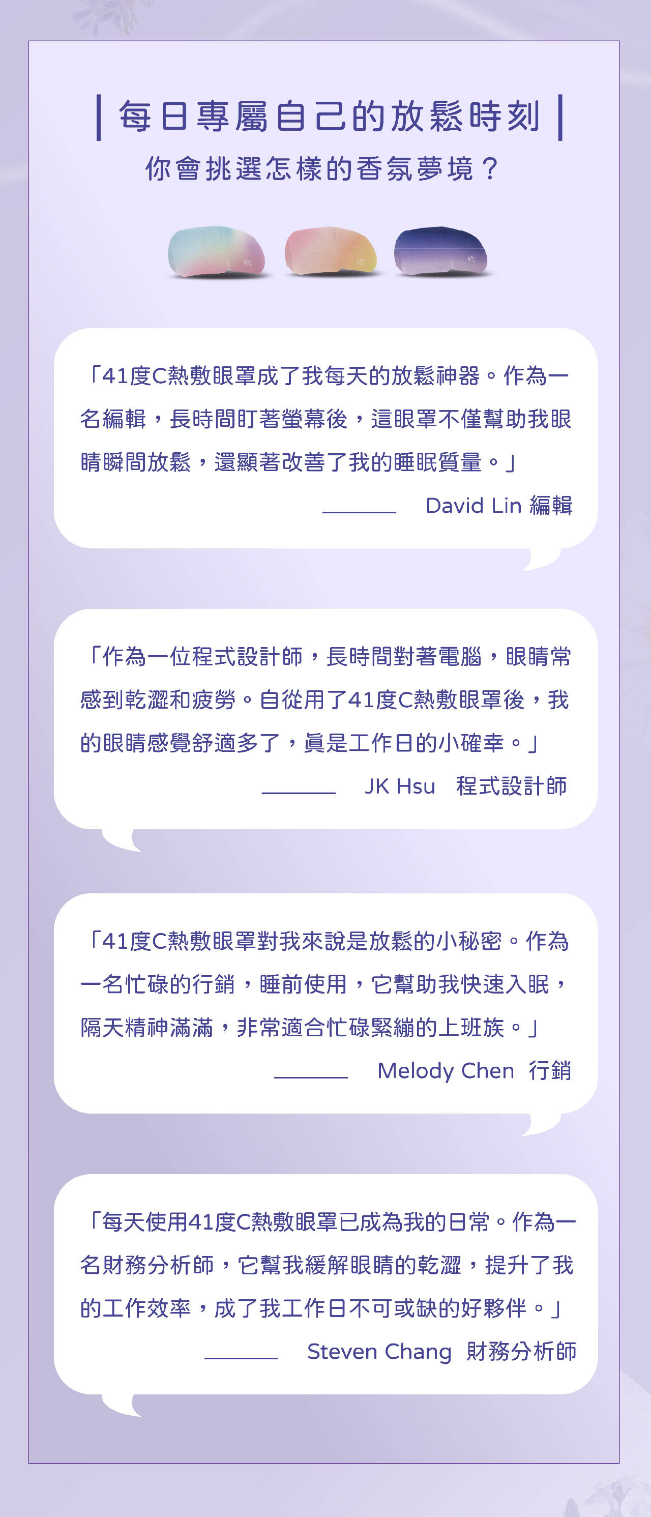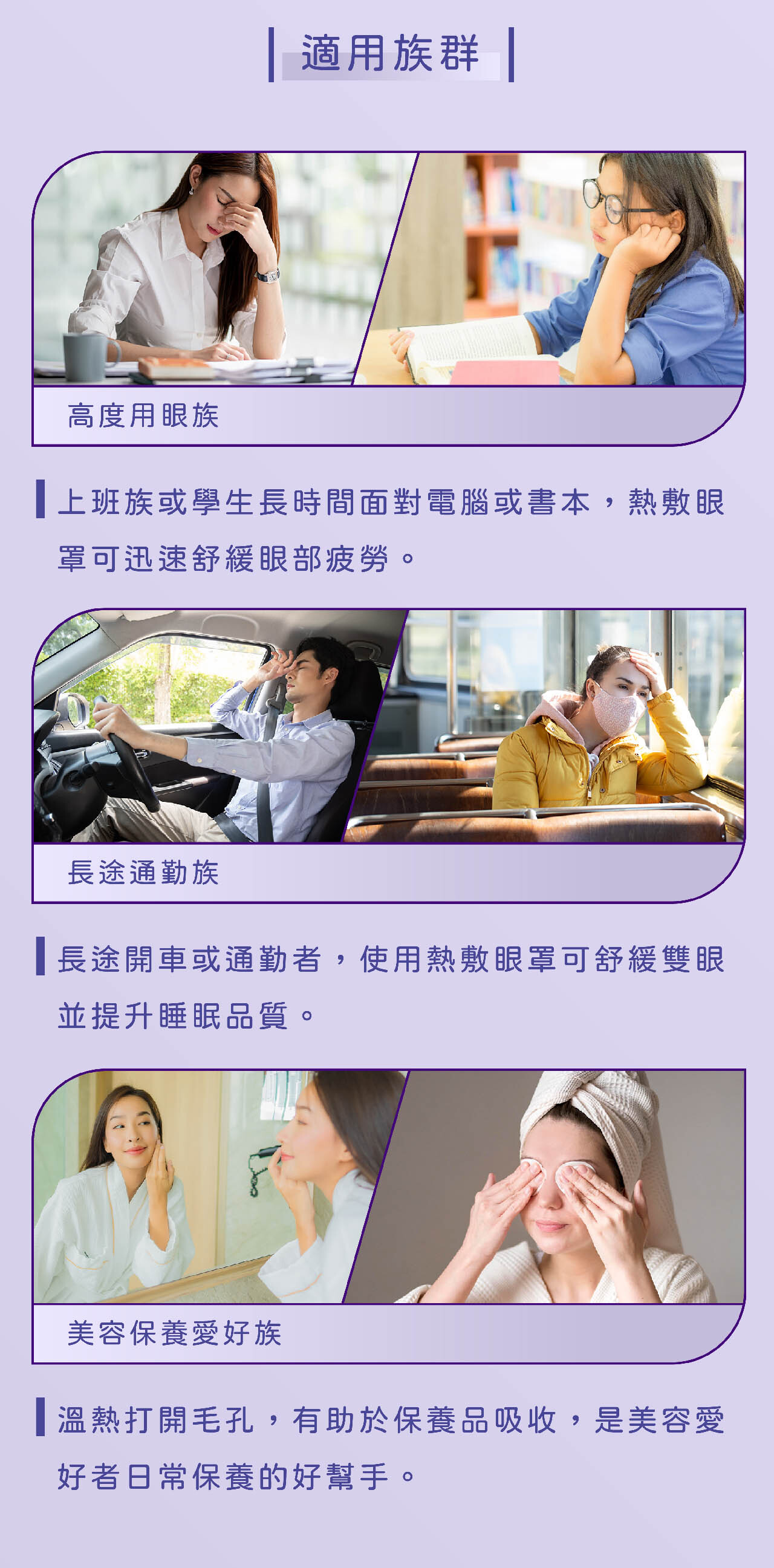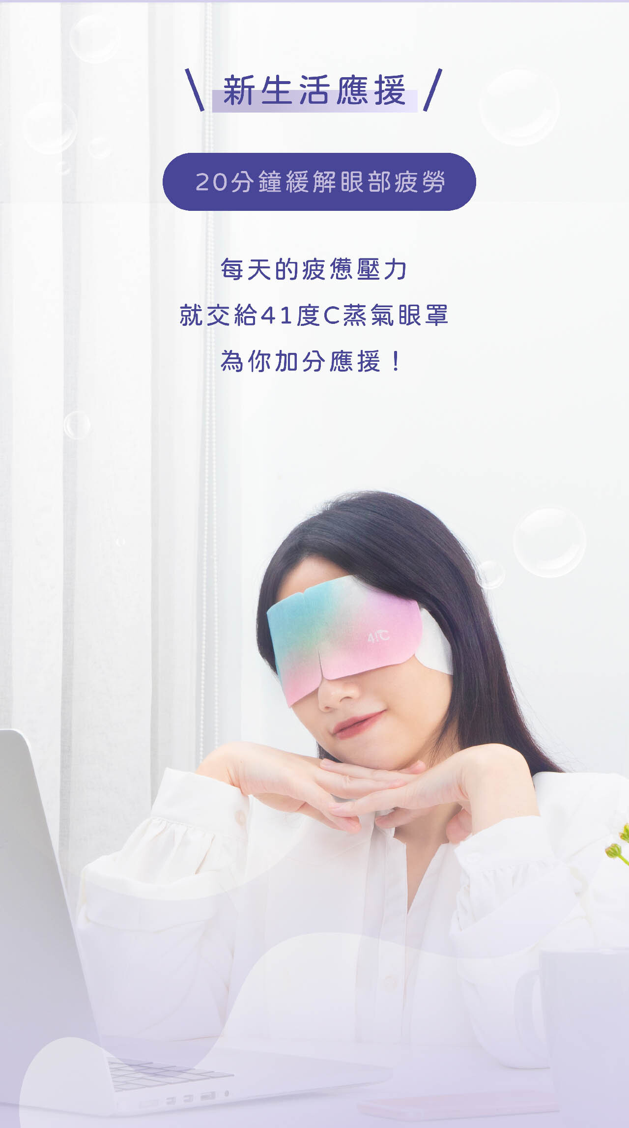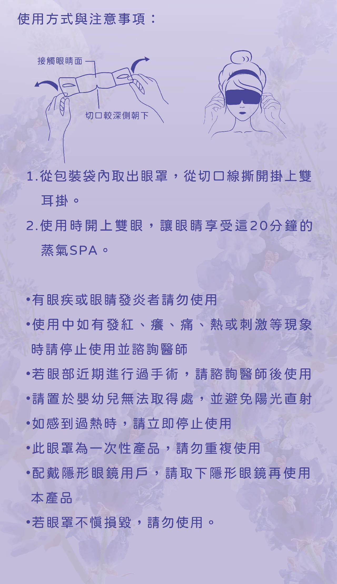 • 使用時閉上雙眼,讓眼睛享受這20分鐘的蒸氣SPA。