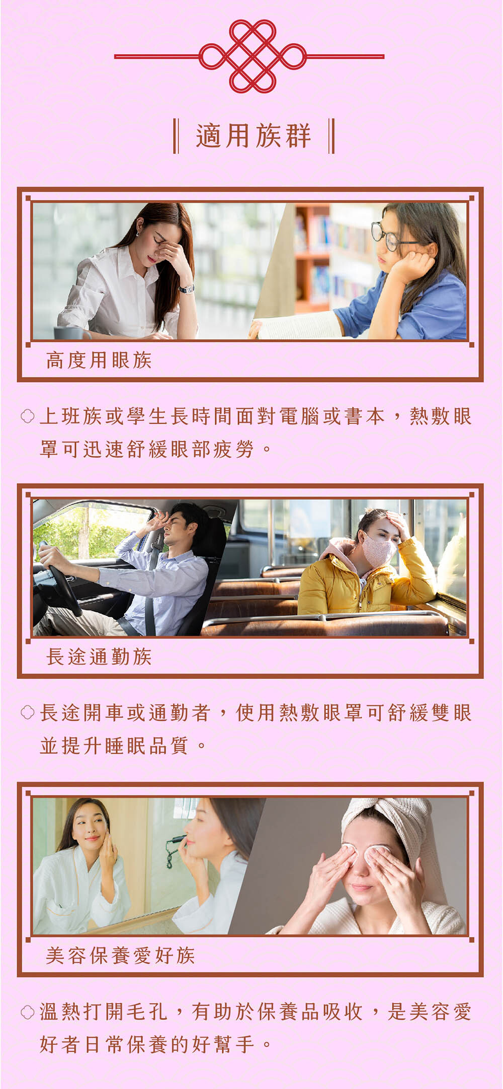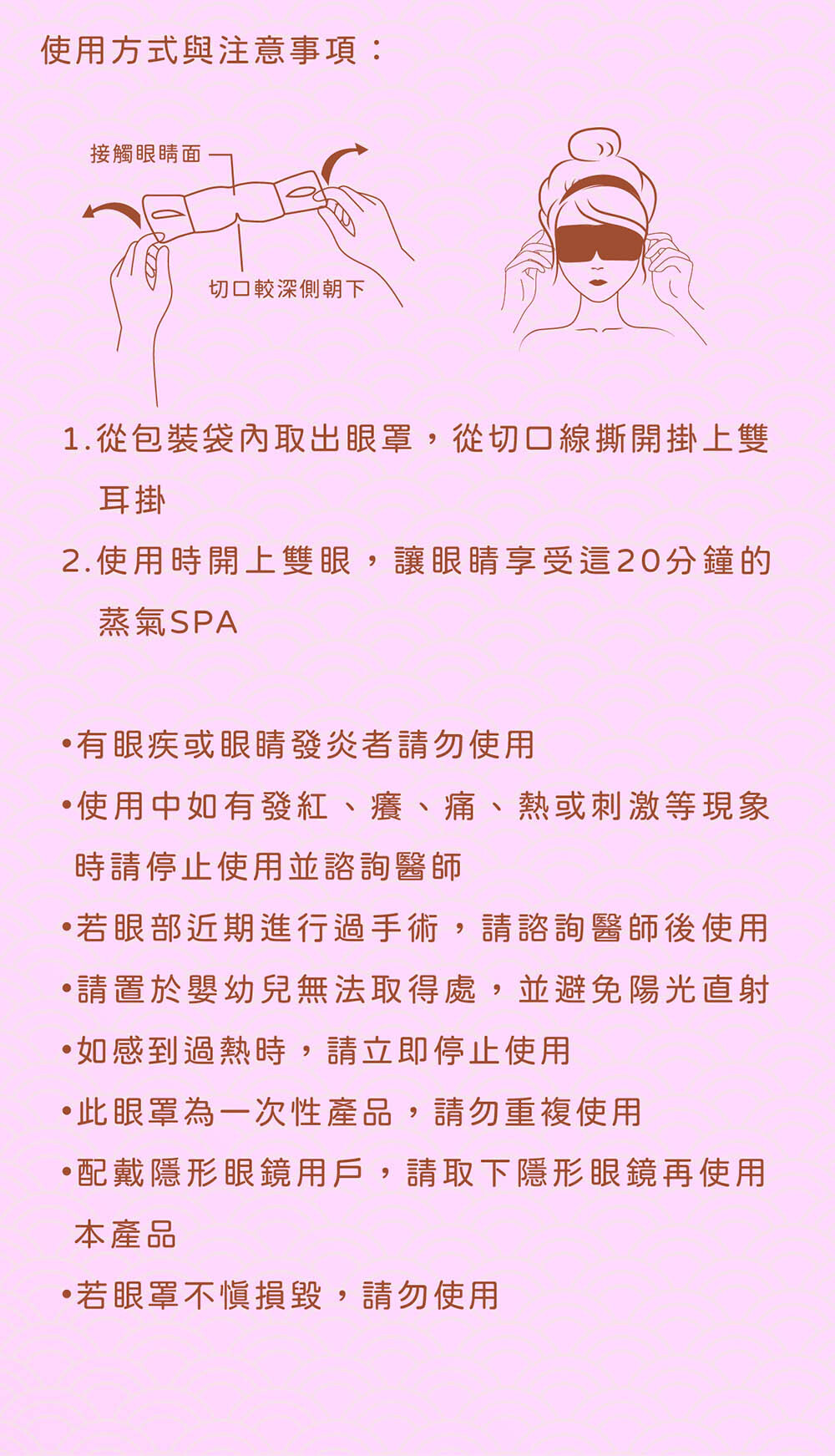 •使用時閉上雙眼,讓眼睛享受這20分鐘的蒸氣SPA。