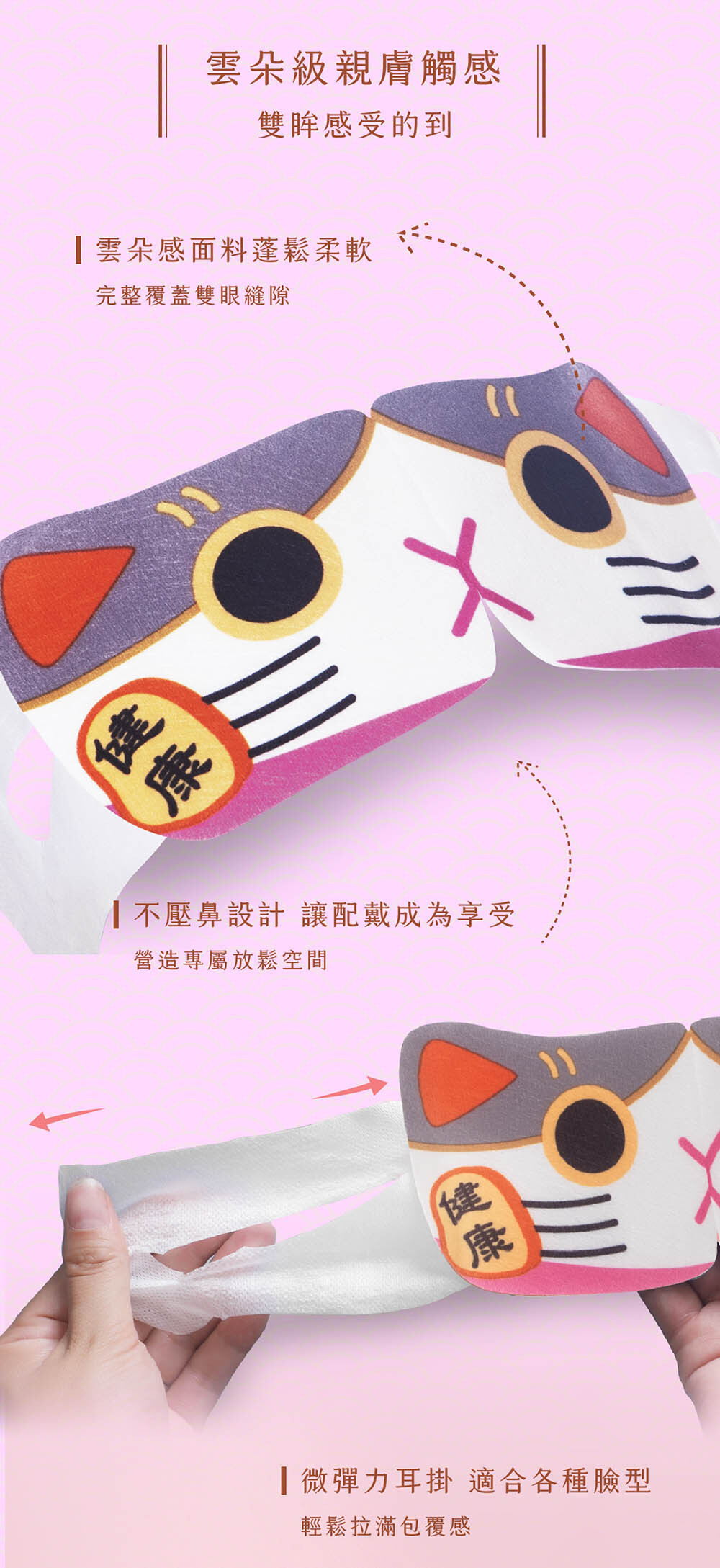 •從包裝袋內取出眼罩,從切口線撕開掛上雙耳掛。