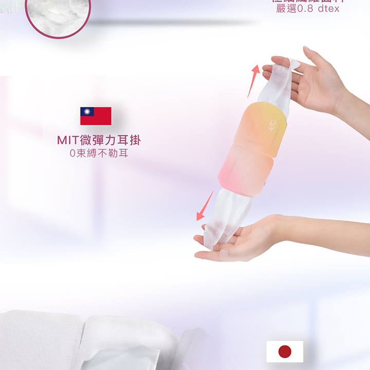 • 從包裝袋內取出眼罩,從切口線撕開掛上雙耳掛。