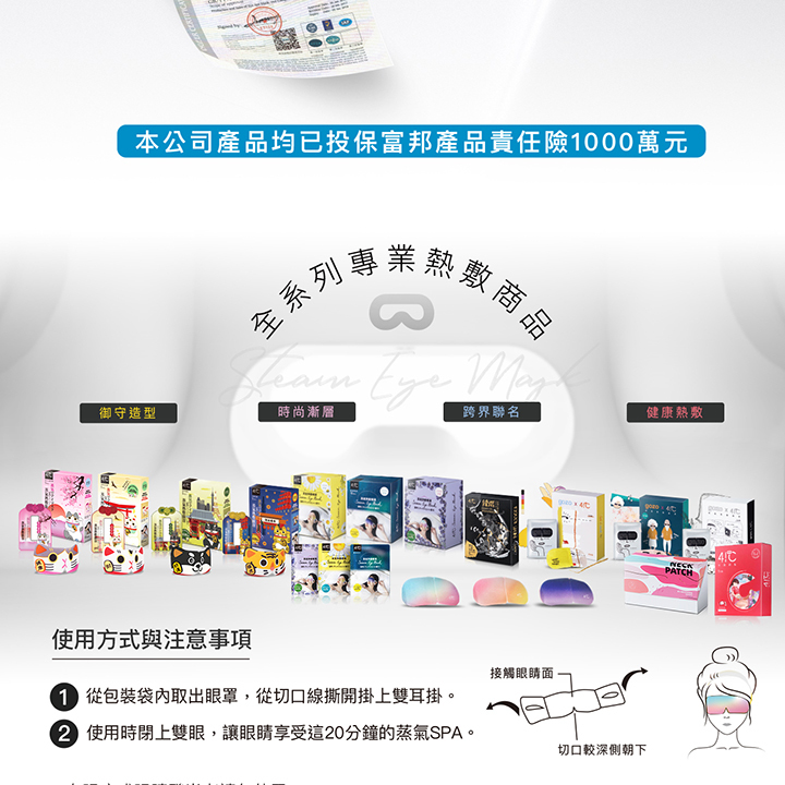 • 使用時閉上雙眼,讓眼睛享受這20分鐘的蒸氣SPA。