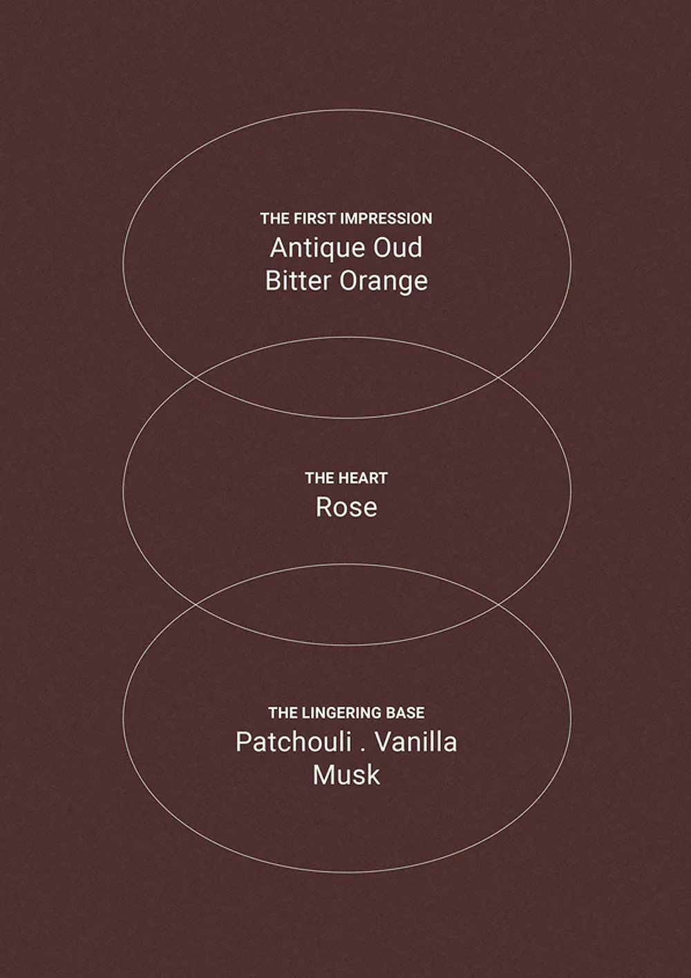 調 辛香木質調濃鬱而引人入勝,與馥鬱花香的醉人回味完美融合。這款香水散發著既熟悉又變幻莫測的氣息,由古老的沉香木和苦橙交織而成,並以精緻的玫瑰花香為核心。基調則以柔和的木質香調、甜美的廣藿香和溫暖的香草氣息收尾,渾然天成。