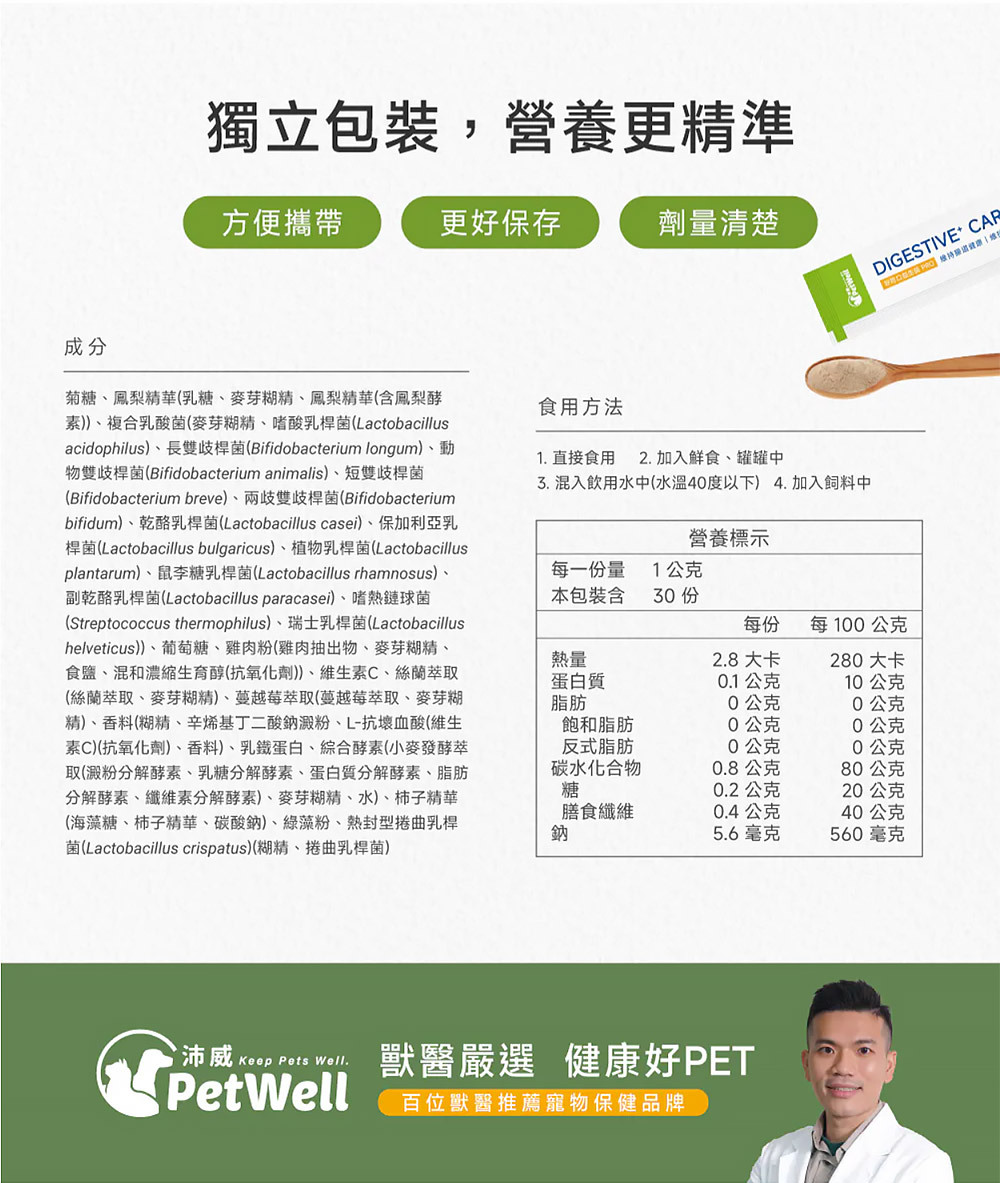 品名:PetWell 沛威|專效保健-好胃口益生菌 狗狗專用 (30包/盒)