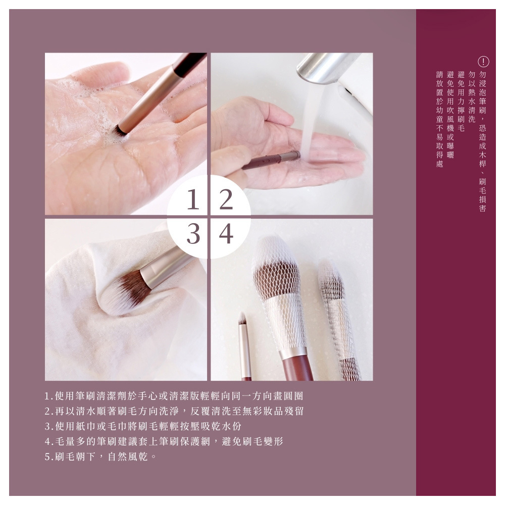 1. 勿浸泡筆刷,恐造成木桿、刷毛損害
