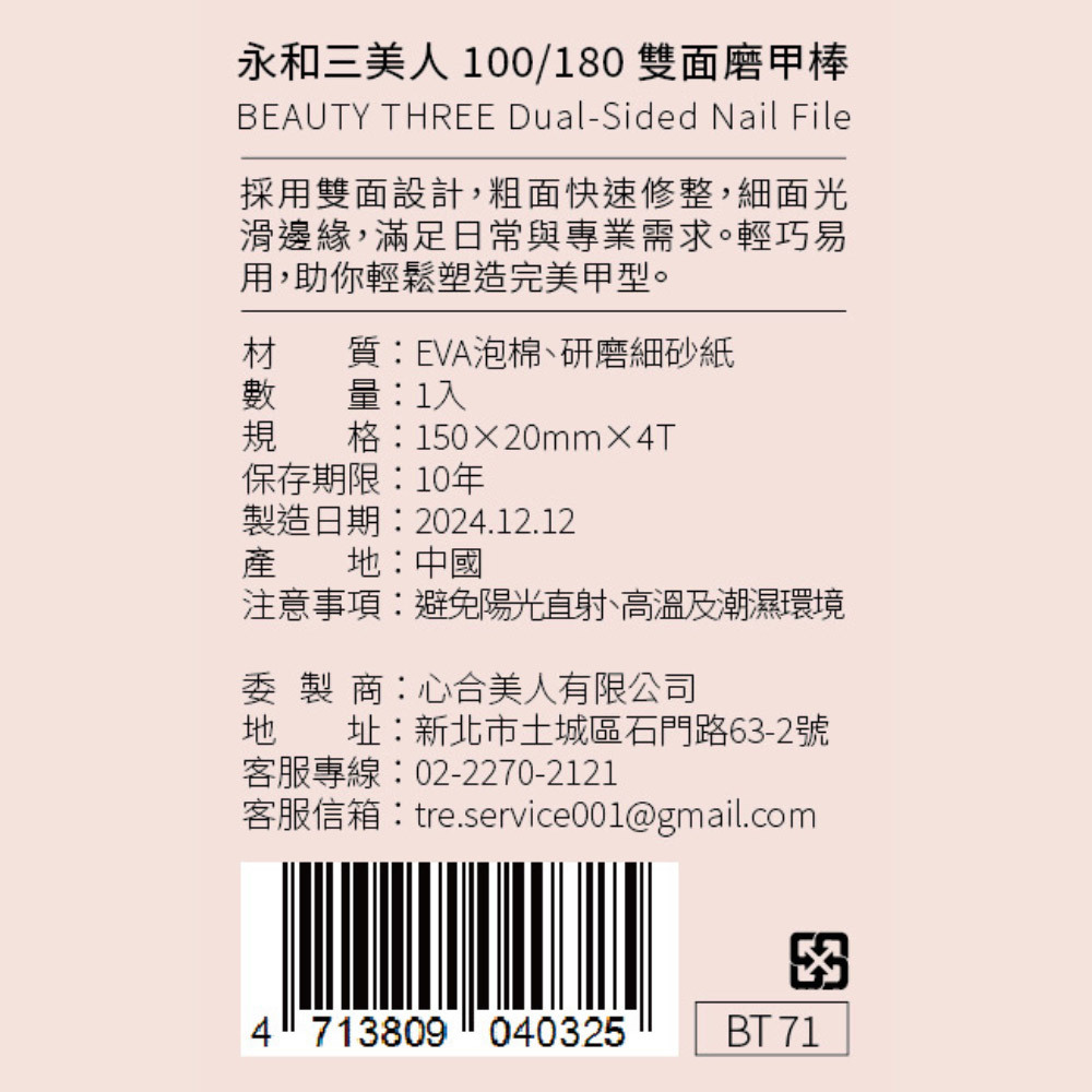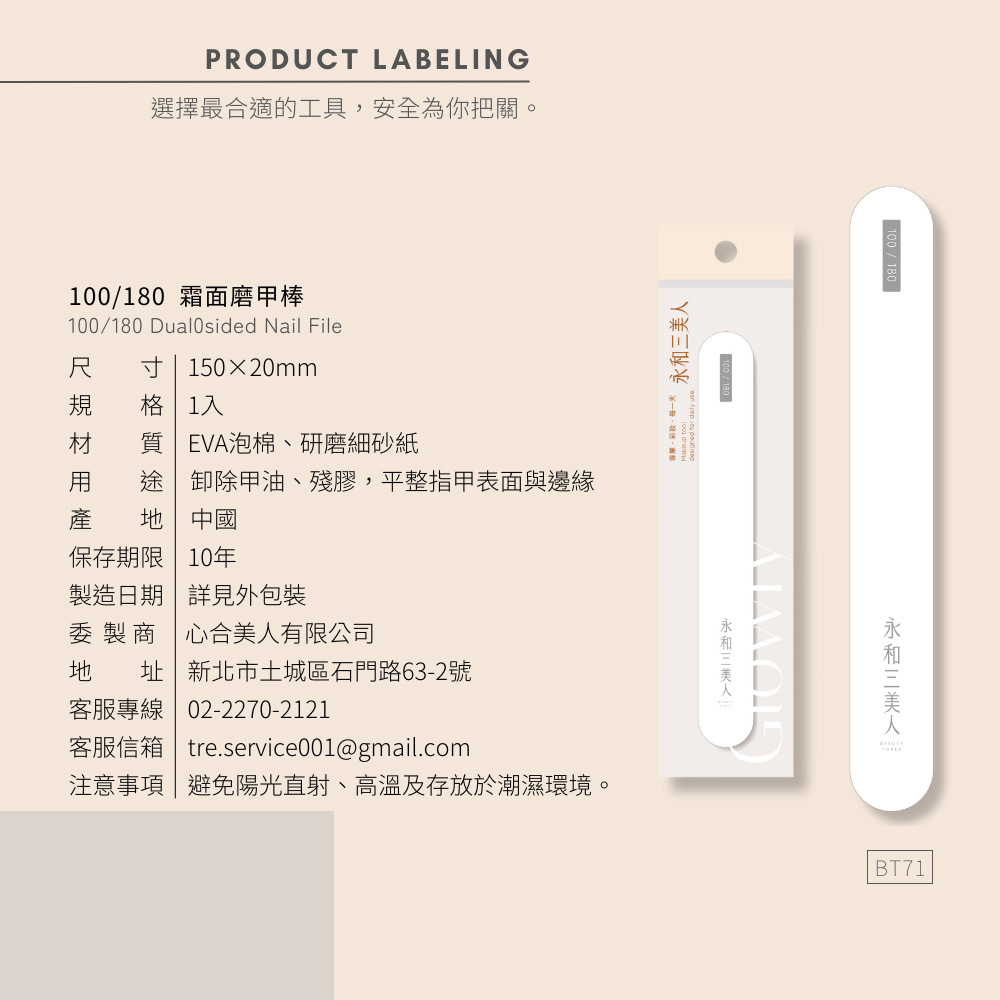 用 途:卸除甲油、殘膠,平整指甲表面與邊緣