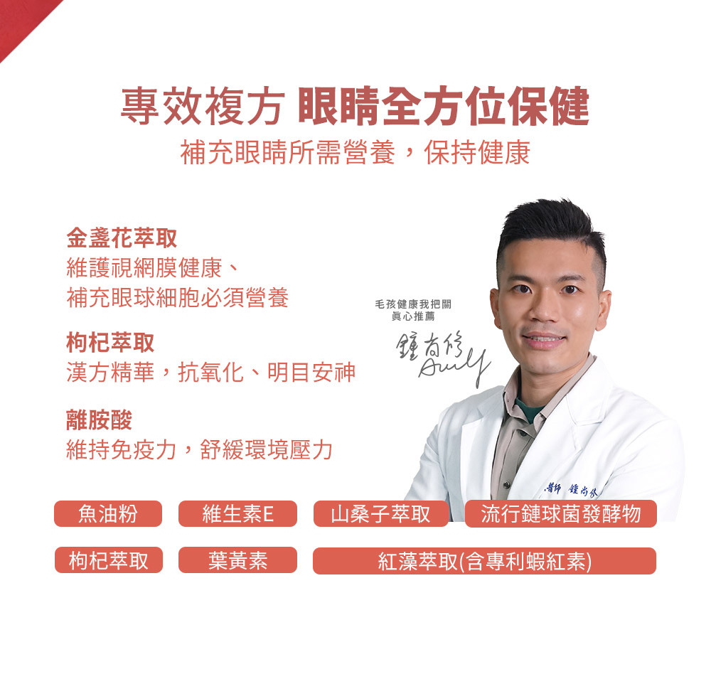 👀眼睛明亮:離胺酸+葉黃素+玻尿酸