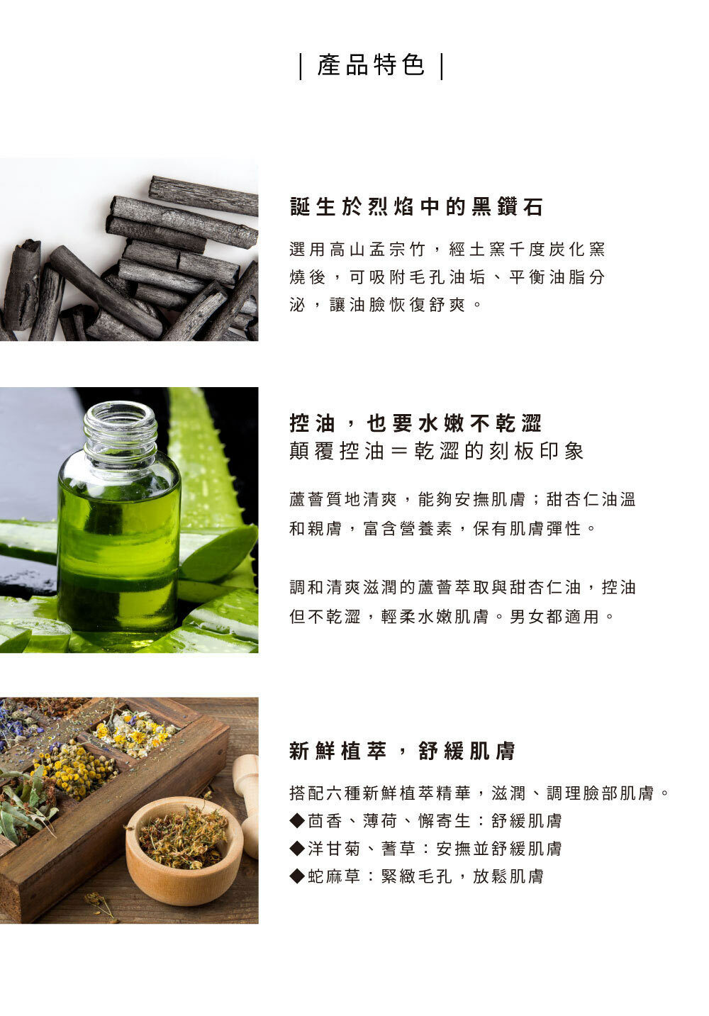 • 蘆薈萃取、甜杏仁油幫助控油不乾澀