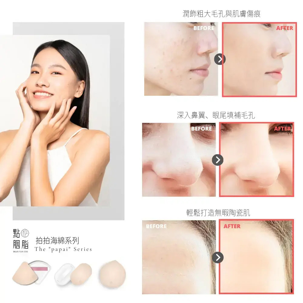 • 高密度極細氣孔,有效控制粉底量