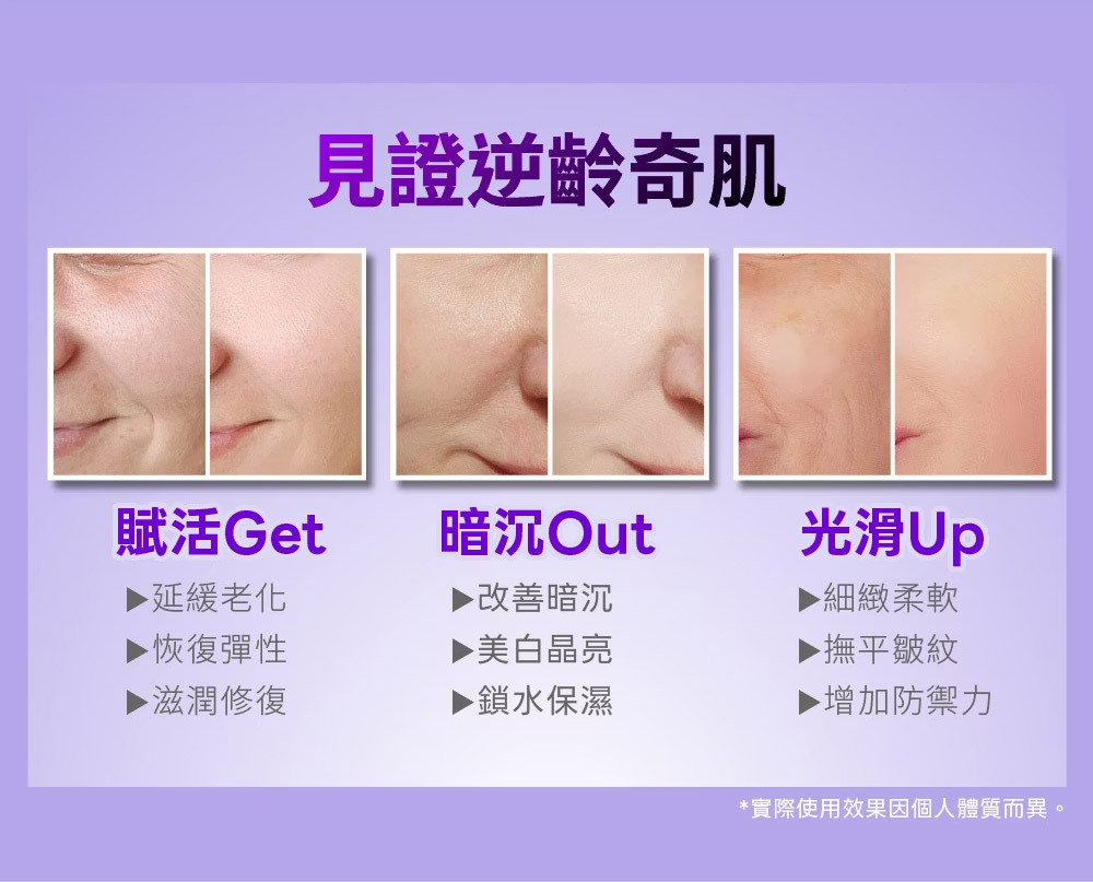 ■ 三大功效|極撫紋、速亮白、超緊顏