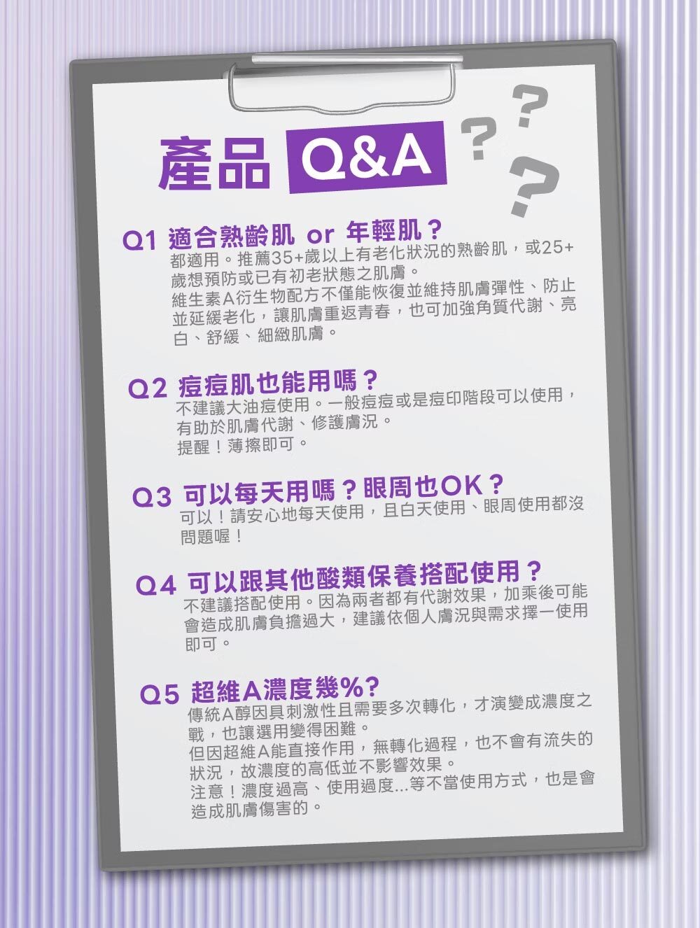 注意事項:請置於嬰幼兒無法取得處以避免誤食;使用後如有任何不適或持續紅腫現象,應立即停止使用並洽詢專業醫師;皮膚有受傷、紅腫現象時不得使用;皮膚敏感者,使用前請先做局部皮膚敏感性測試,無刺激反應方可使用;不建議孕婦及備孕女性使用。