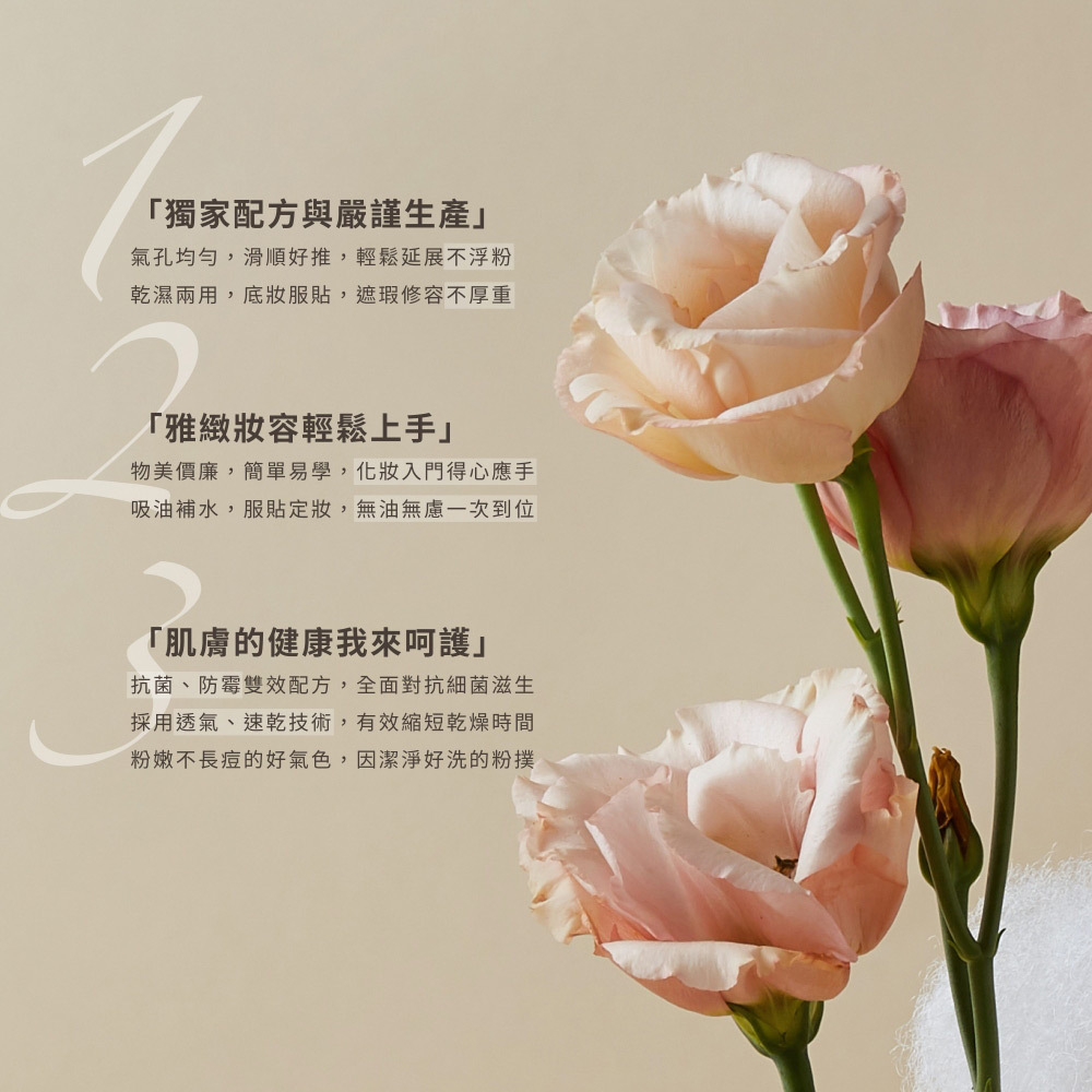 │ 奢侈厚度分散力道,輕盈無粉感!