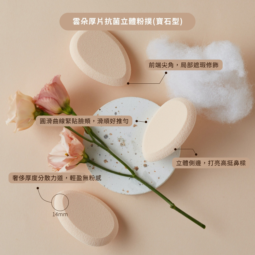雲朵厚片/寶石型 抗菌立體化妝粉撲