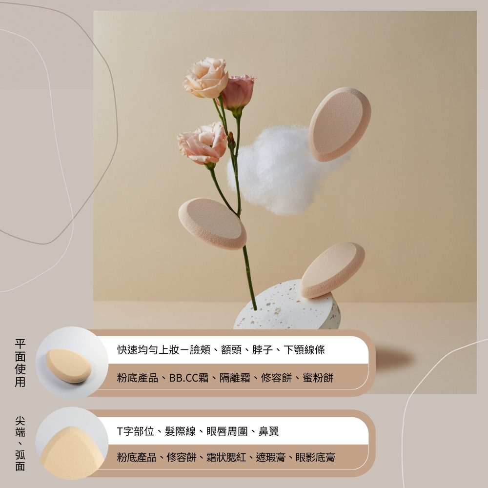 • 圓滑曲線緊貼臉頰,滑順好推勻