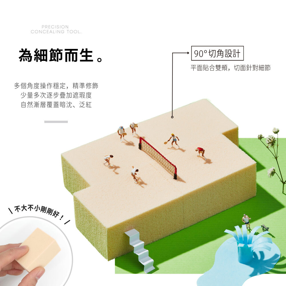 • 平面貼合雙頰,切面針對細節