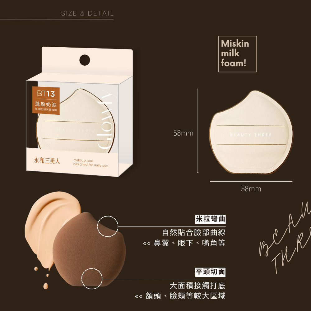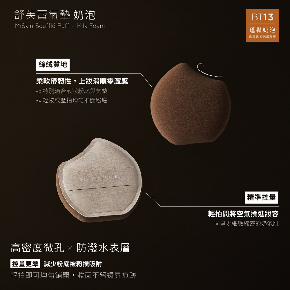特別適合液狀粉底,輕拍間將空氣揉進妝容,呈現細緻綿密的奶泡肌。