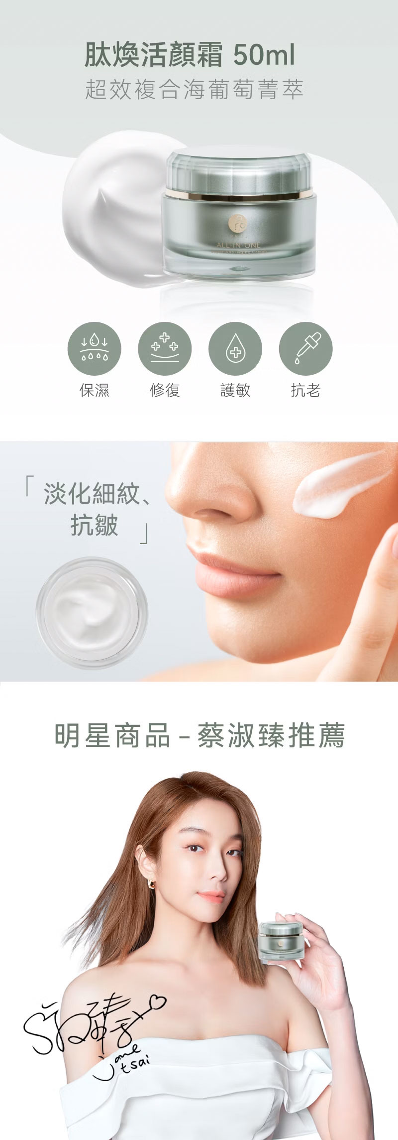 All-In-One 高濃度明星成分萃取修護,添加修復抗老活性胜肽、保濕舒敏海葡萄菁萃、高滲透型神經醯胺撫紋延緩肌膚老化,使肌膚緊緻無痕、澎彈透亮。
