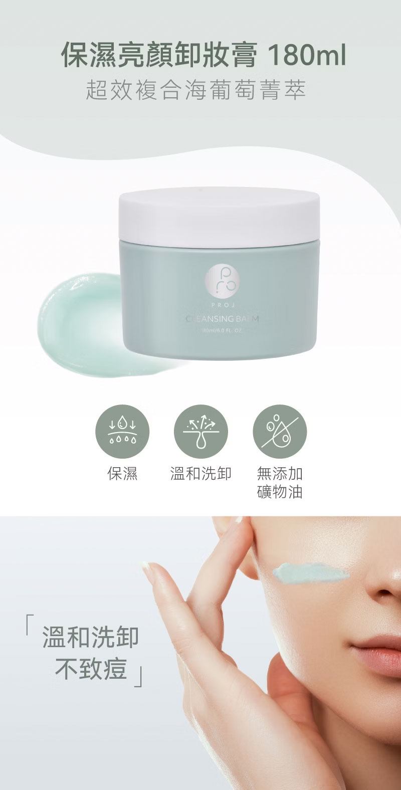 不含礦物油、不起白霧、不熏眼不油膩,為油包水保濕膏狀劑型,增添海葡萄菁萃、維生素E、夏威夷核果油、珊瑚藻萃取等活性植萃,搭配清新橙花茉莉香輕柔按摩肌膚,淨化毛孔溫和卸淨,保濕潤澤促進肌膚新陳代謝,卸妝同時保養肌膚,增強肌膚防禦能力。