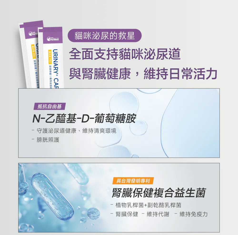 品名:PetWell 沛威|專效保健-護泌尿PRO 貓貓專用 (30包/盒)