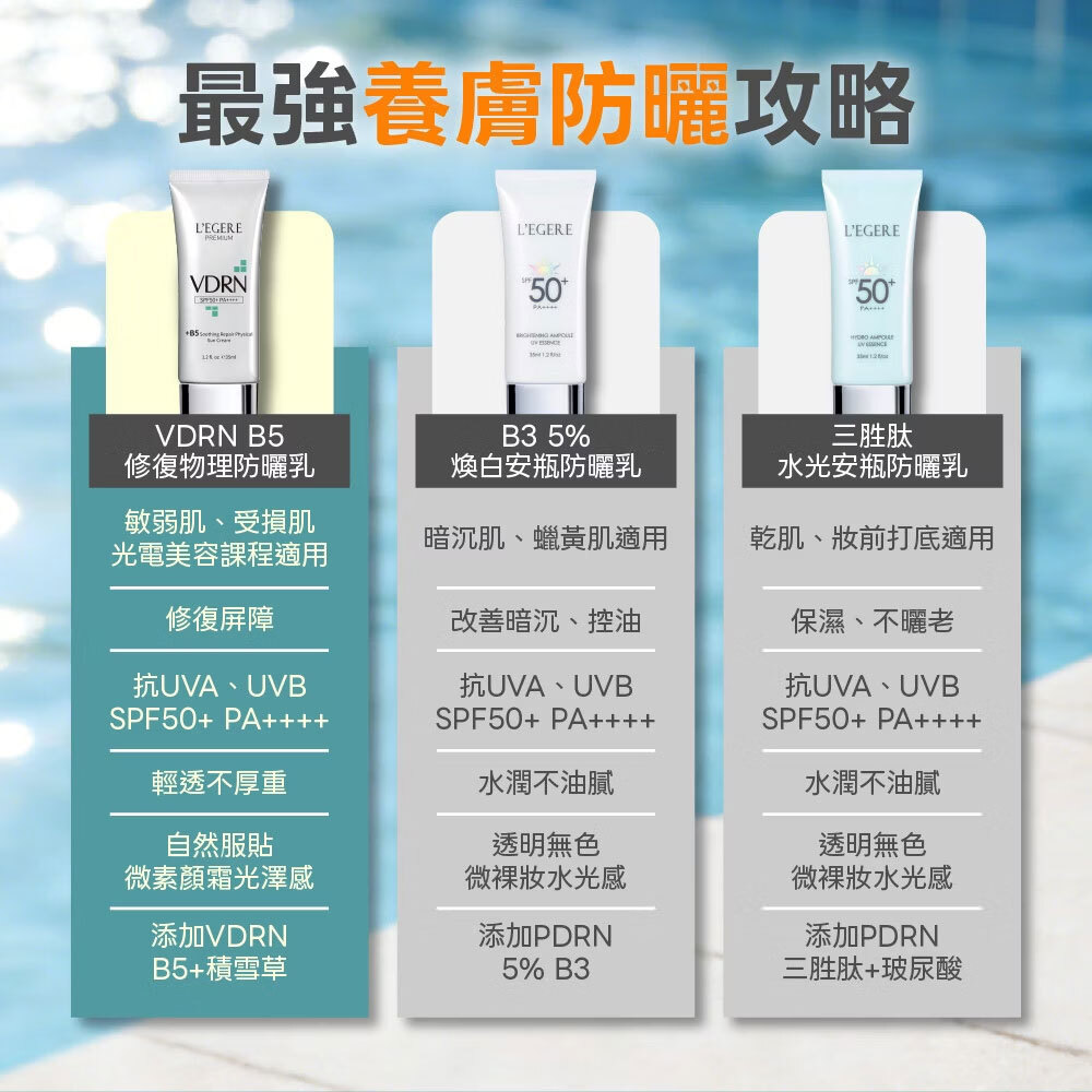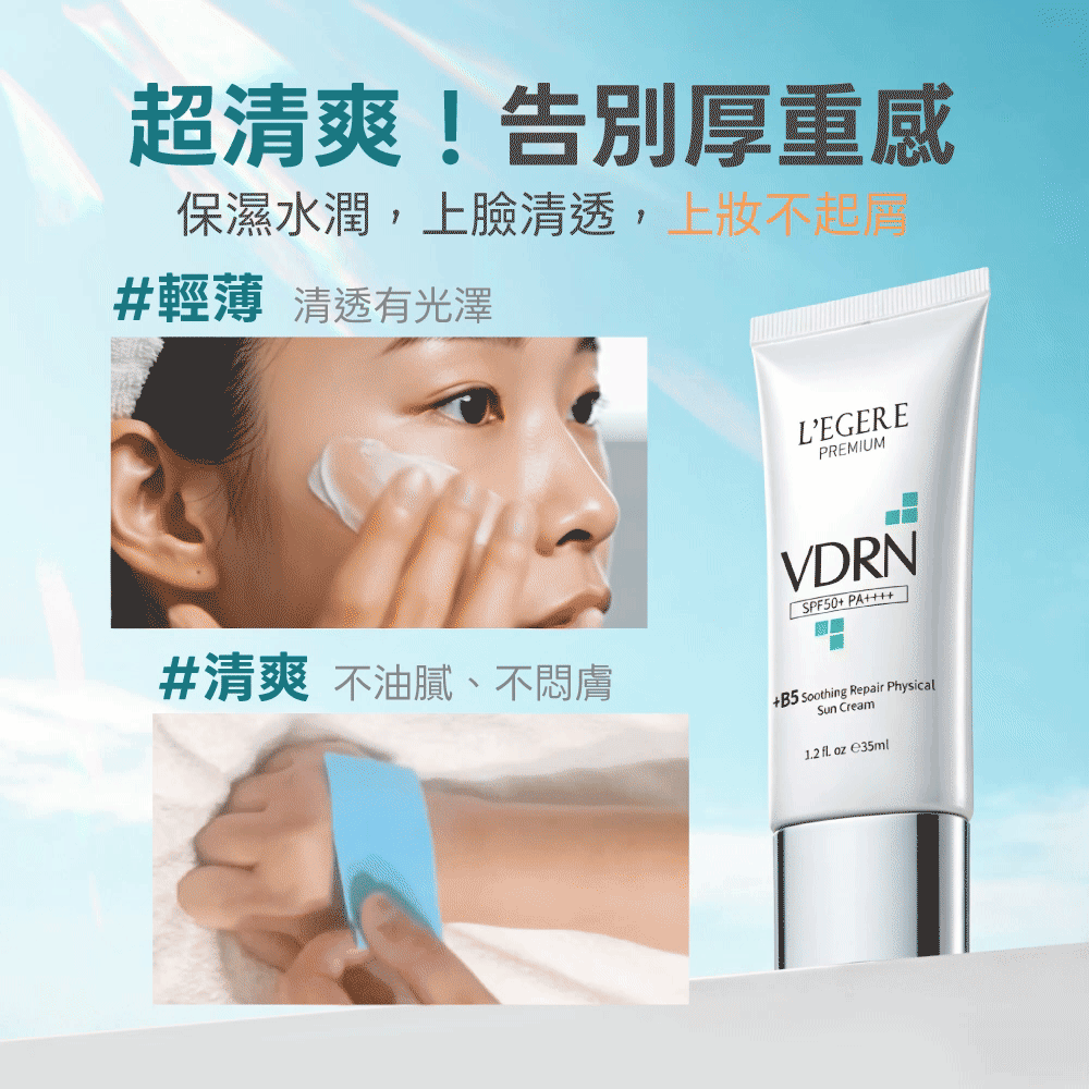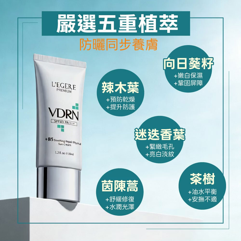 主商品: L'EGERE VDRN B5修復物理防曬乳 SPF50+ PA++++