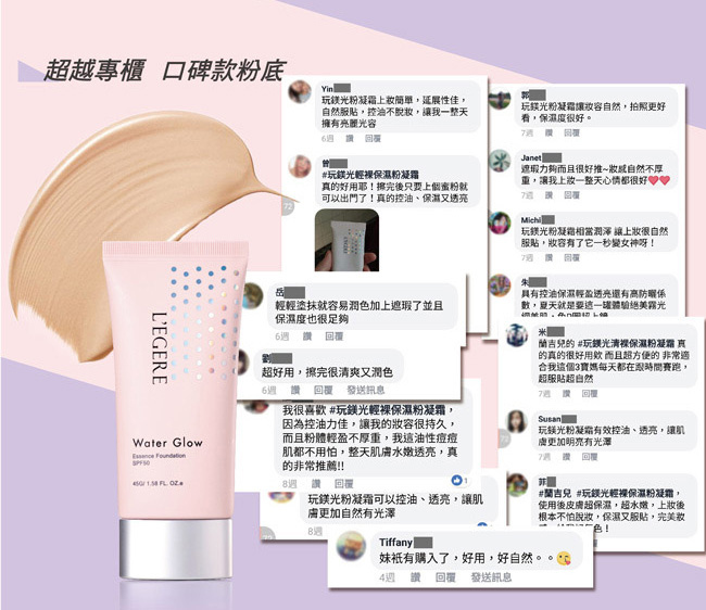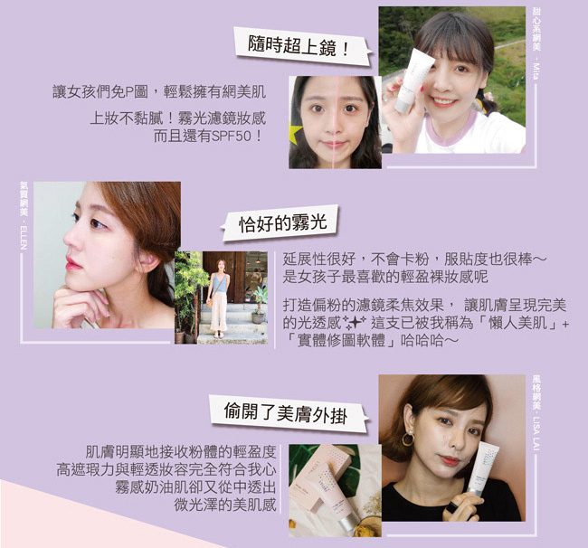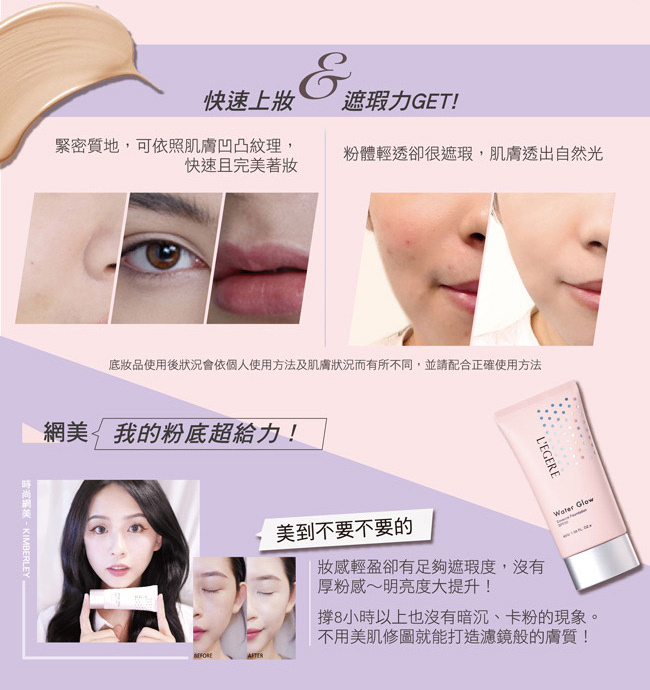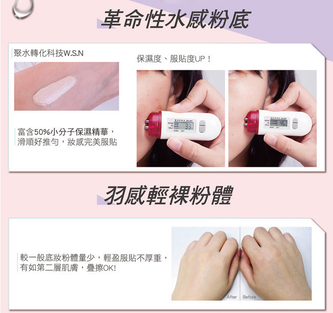 使用方法:基礎保養→輕裸保濕粉凝霜→蜜粉定妝
