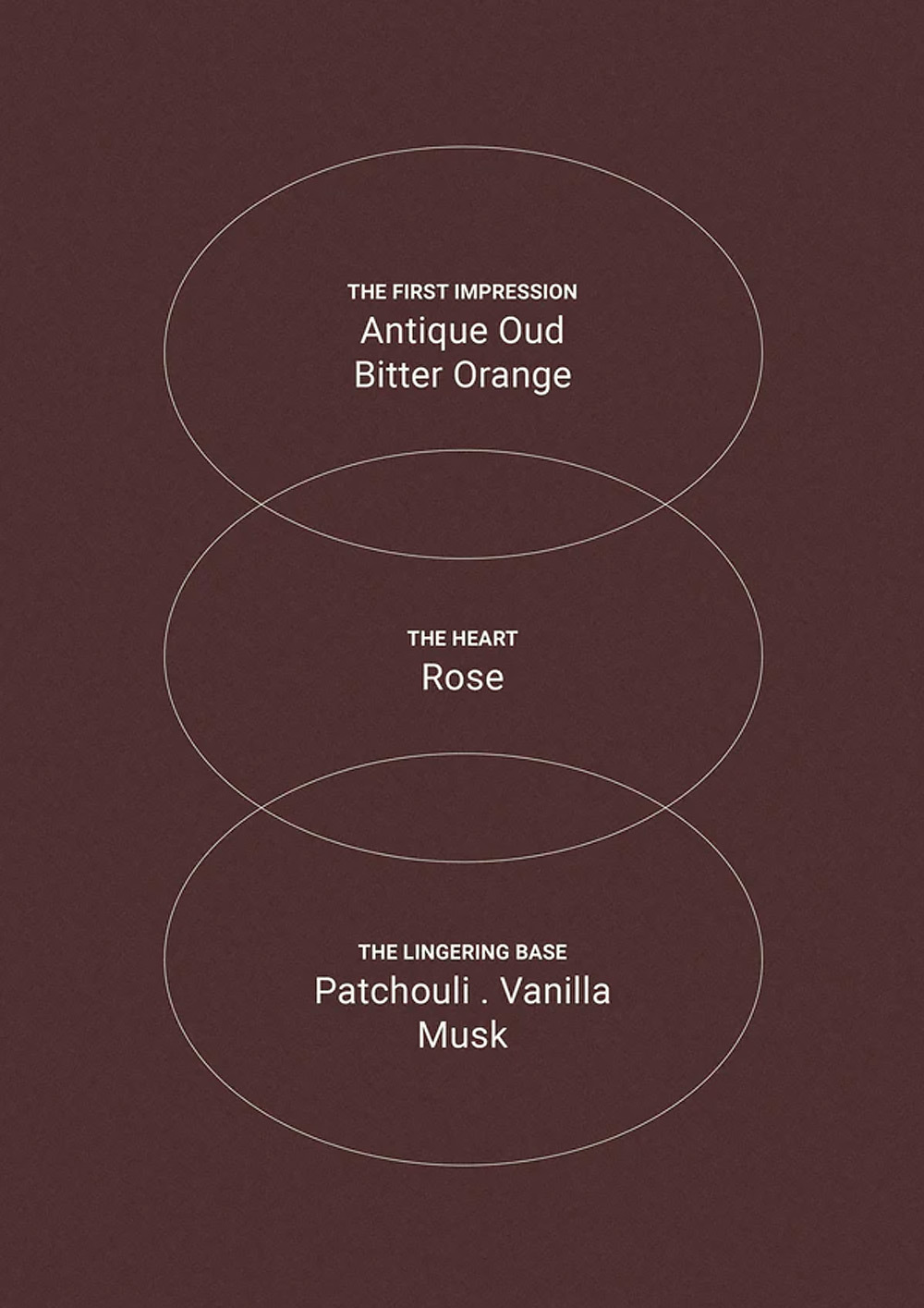 這款香水散發著既熟悉又變幻莫測的氣息,由古老的沉香木和苦橙交織而成,並以精緻的玫瑰花香為核心。