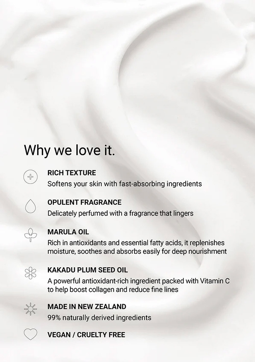 ▪ 本產品蘊含: 富含維生素的卡卡杜李油和馬魯拉油。馬魯拉油功效全面,既具有抗發炎作用,又富含強效抗氧化劑,包括維生素C、維生素E、必需胺基酸和類黃酮。這些抗氧化劑以及ω-6和ω-9脂肪酸,能夠補充水分,並減少泛紅現象。其高含量的必需脂肪酸成分也與皮膚表層成分相似,以達到最佳吸收。
