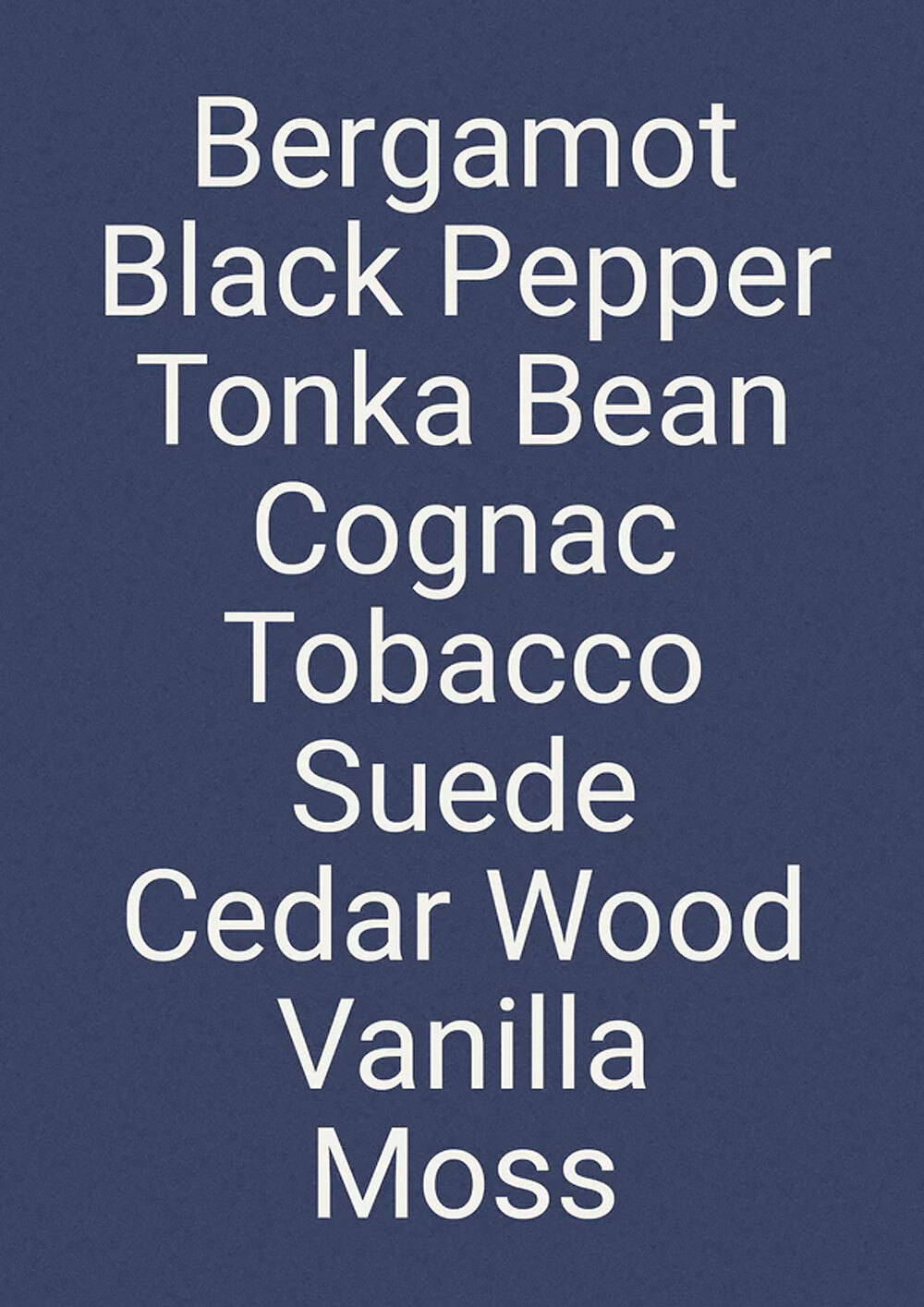 黑胡椒和甜佛手柑的奇妙組合,與皮革絨面革、煙草葉和柔滑的煙熏干邑交相輝映。